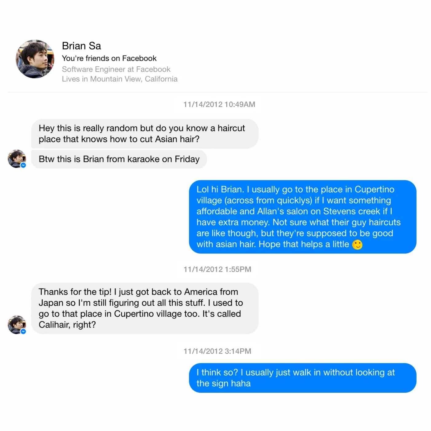 First Facebook Message November 14th, 2012